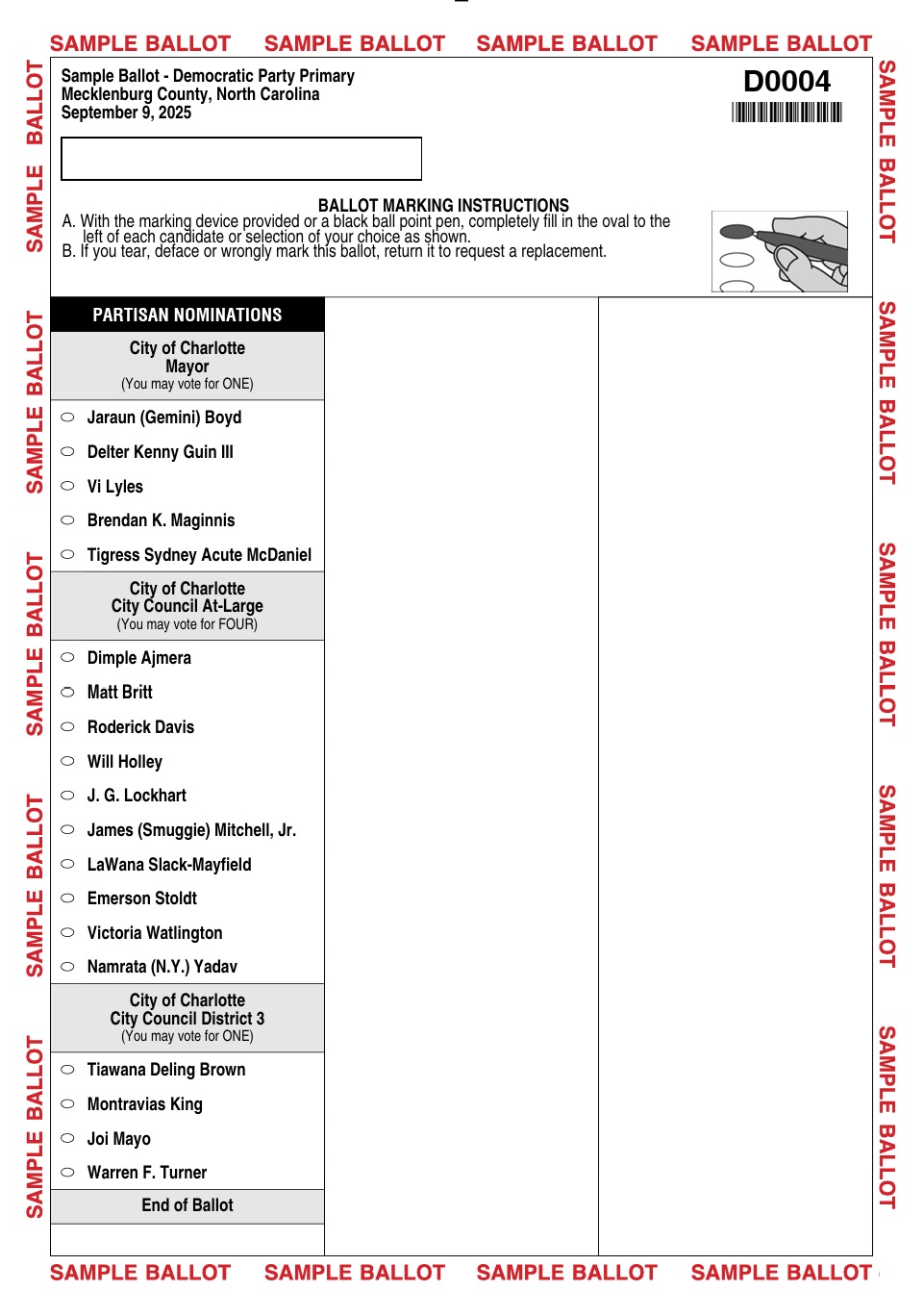 View the Sample Ballot for the Democratic Primary in Steele Creek below.