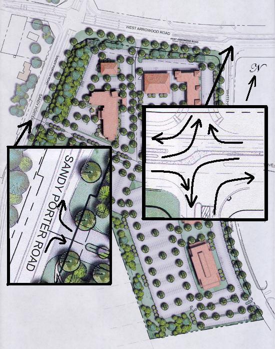 onto Arrowood Road will be blocked, but two turn lanes will allow
