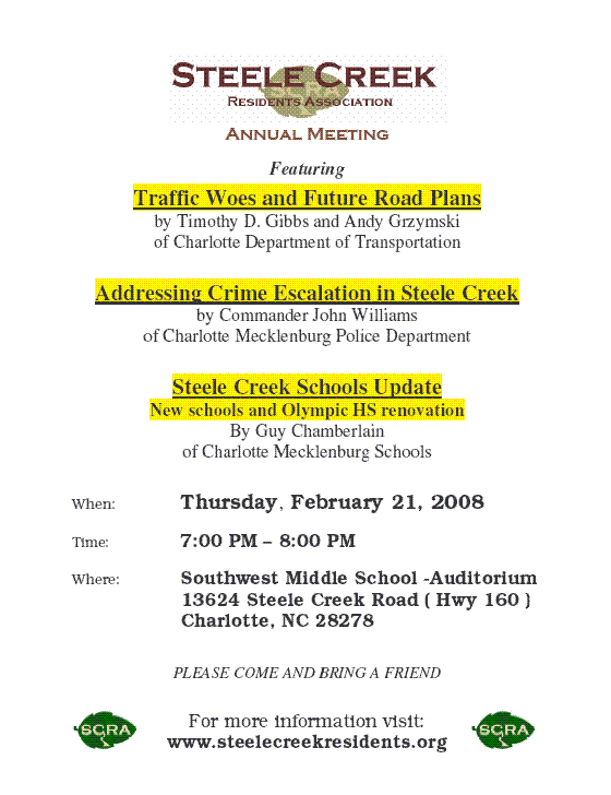 The 2008 Annual Meeting of the Steele Creek Residents Association