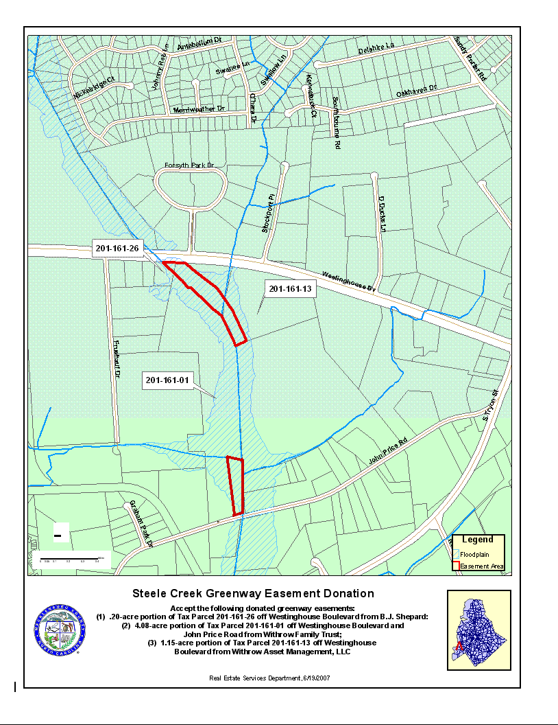 Creek south of Westinghouse Boulevard. Although the length of the donated easements is